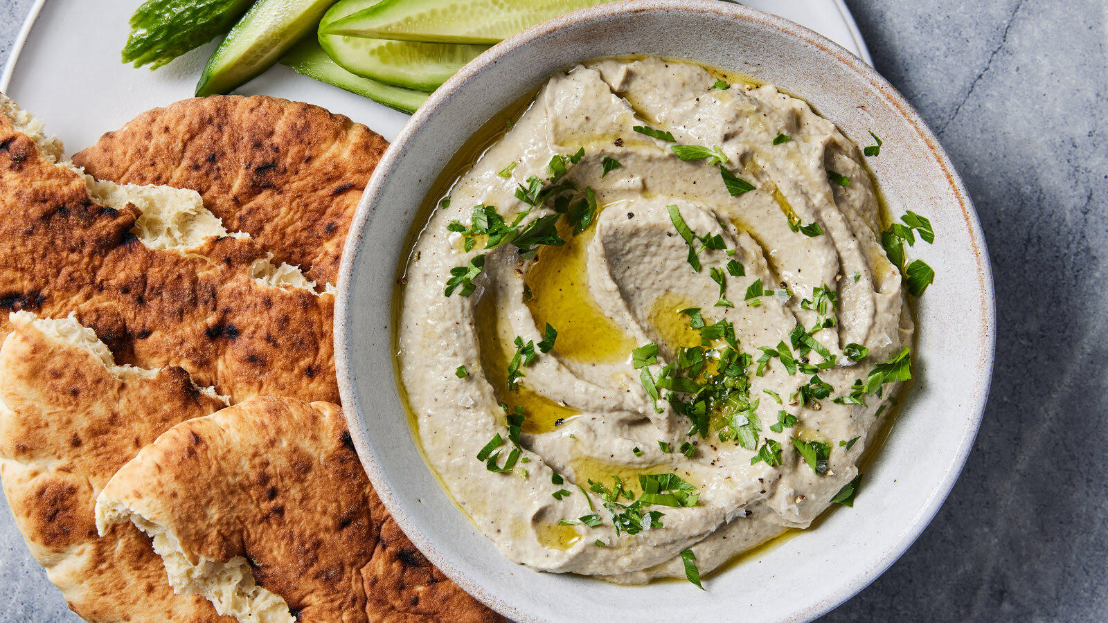 Our Baba Ganoush is crafted from grilled eggplants, seasoned to perfection for a rich,